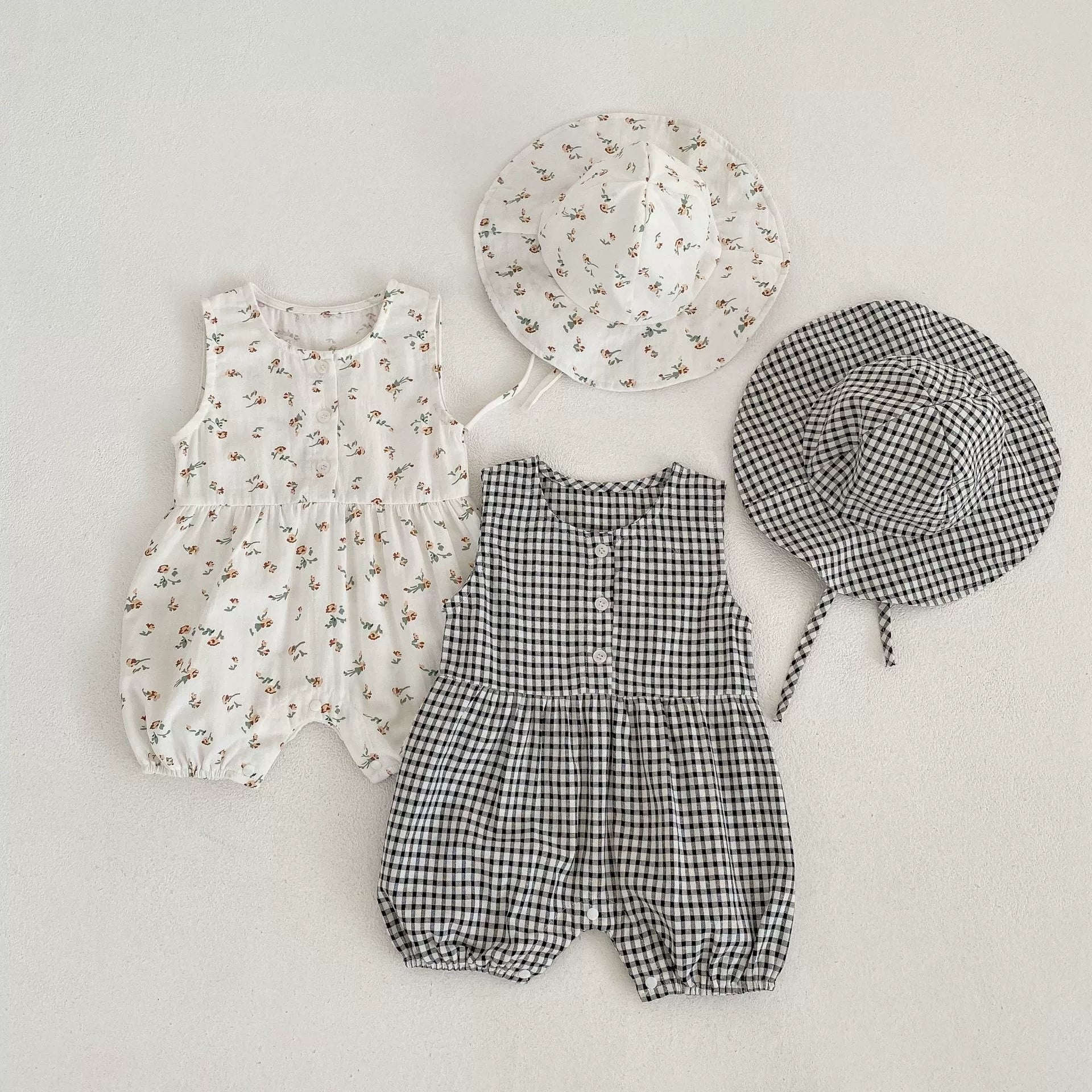 Summer Arrival Baby Girls Sleeveless Cute Floral and Plaid Pattern Rompers